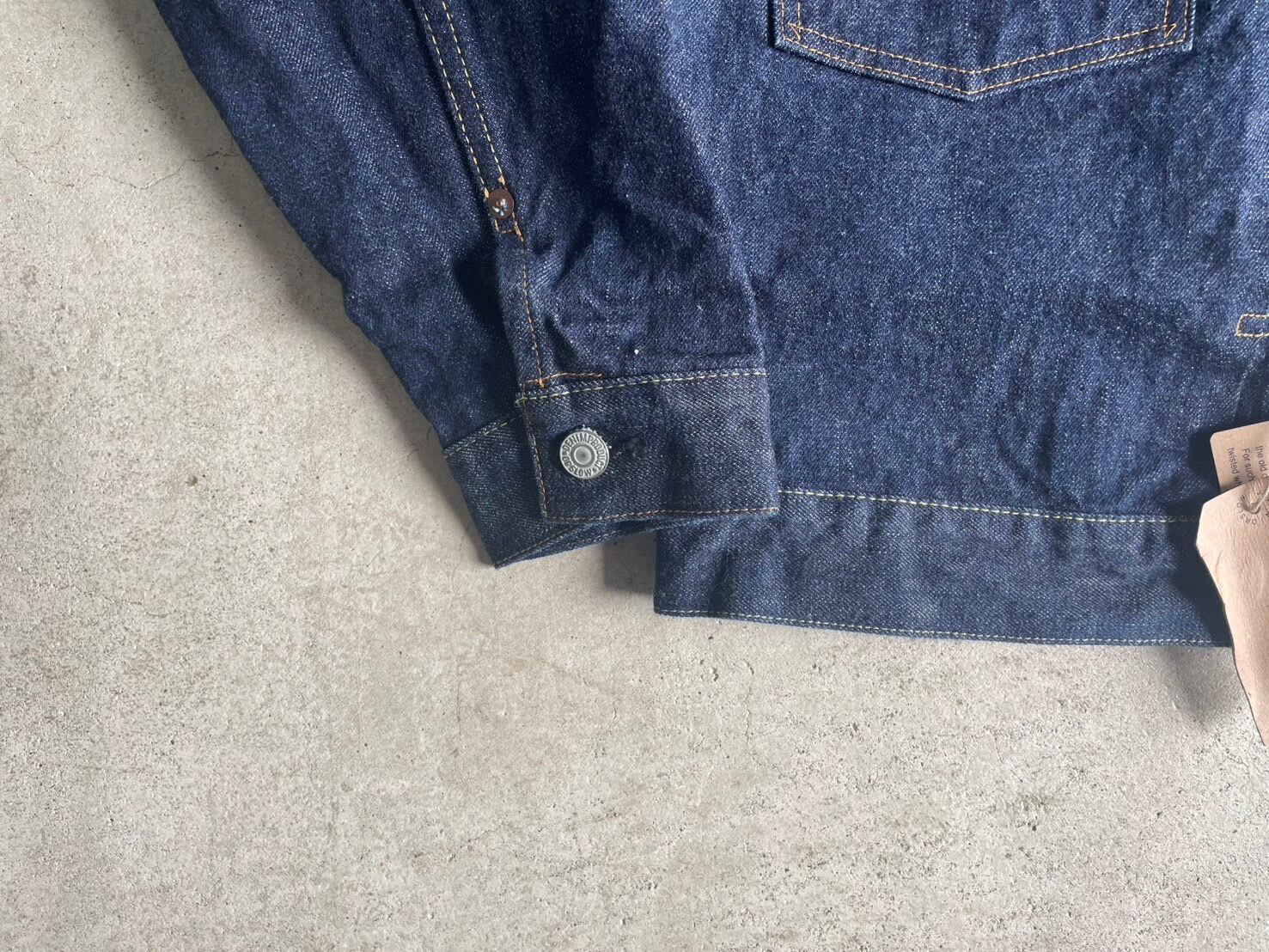50年代のワークウェアを彷彿とさせるデニムジャケット。デニムによるコレクションには特に定評のあるブランドの定番アイテムです。身幅とアームが広く、着丈は短いボックスシルエットが今の気分に良く合います。今のトレンドに合わせてモディファイドされたサイズバランスでは無く、作業着として存在していた動き易さや耐久性を向上させるための作りは、時代の流れに左右されずにじっくりと付き合ってもらえます。ワンウォッシュから、お客様だけのエイジングをお楽しみ下さい。2つのフロントポケットと、プリーツが特徴的です。
