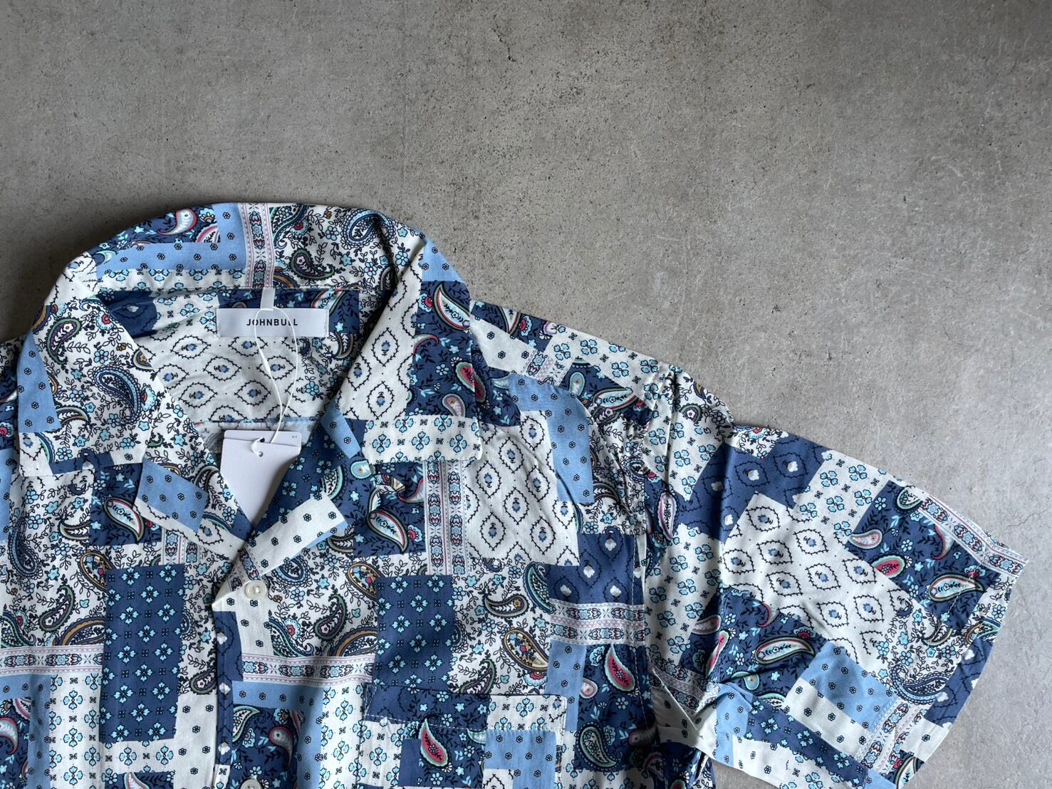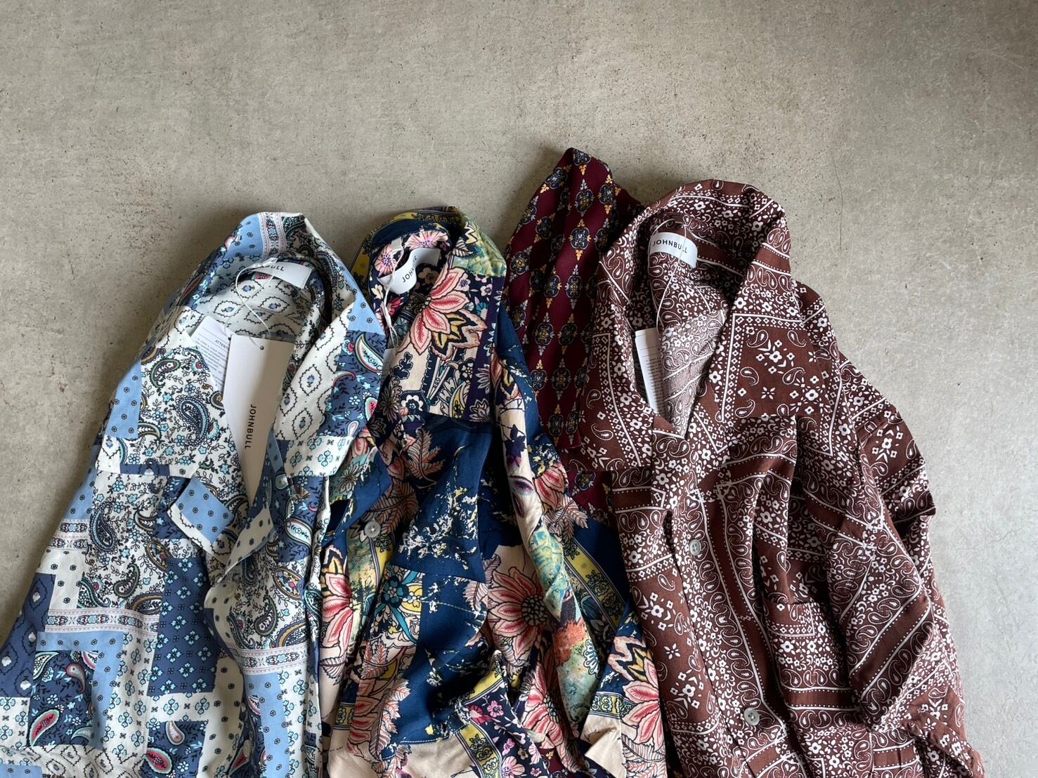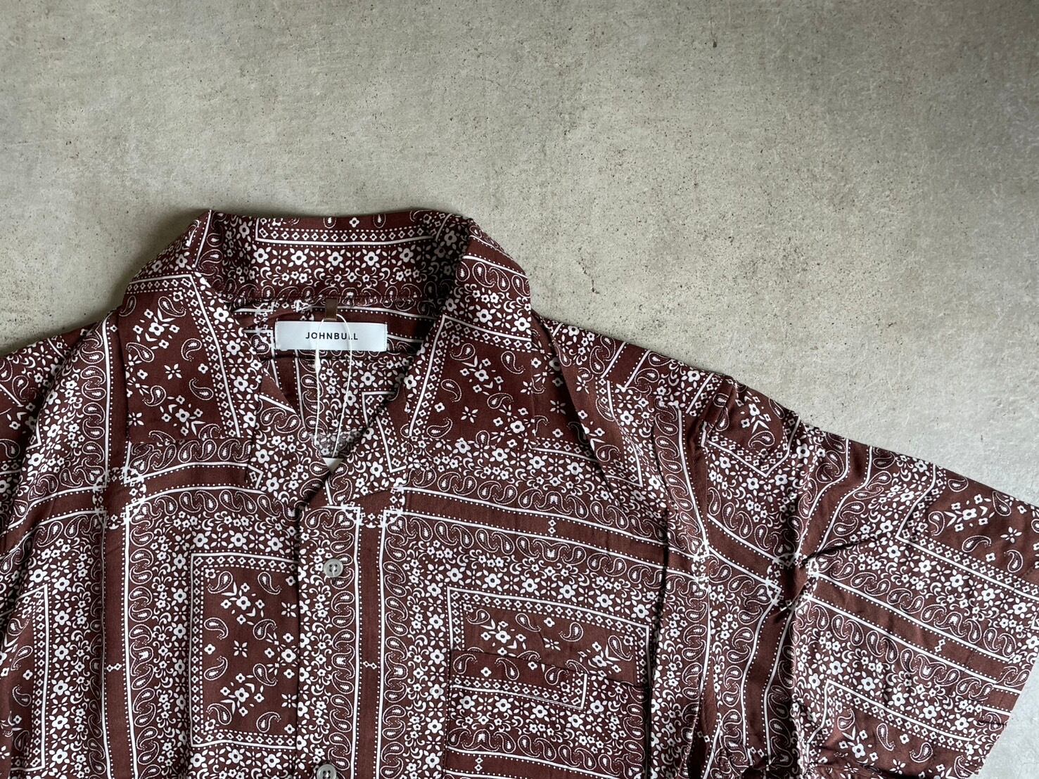 ジョンブルの総柄が目を惹く開襟半袖シャツ。