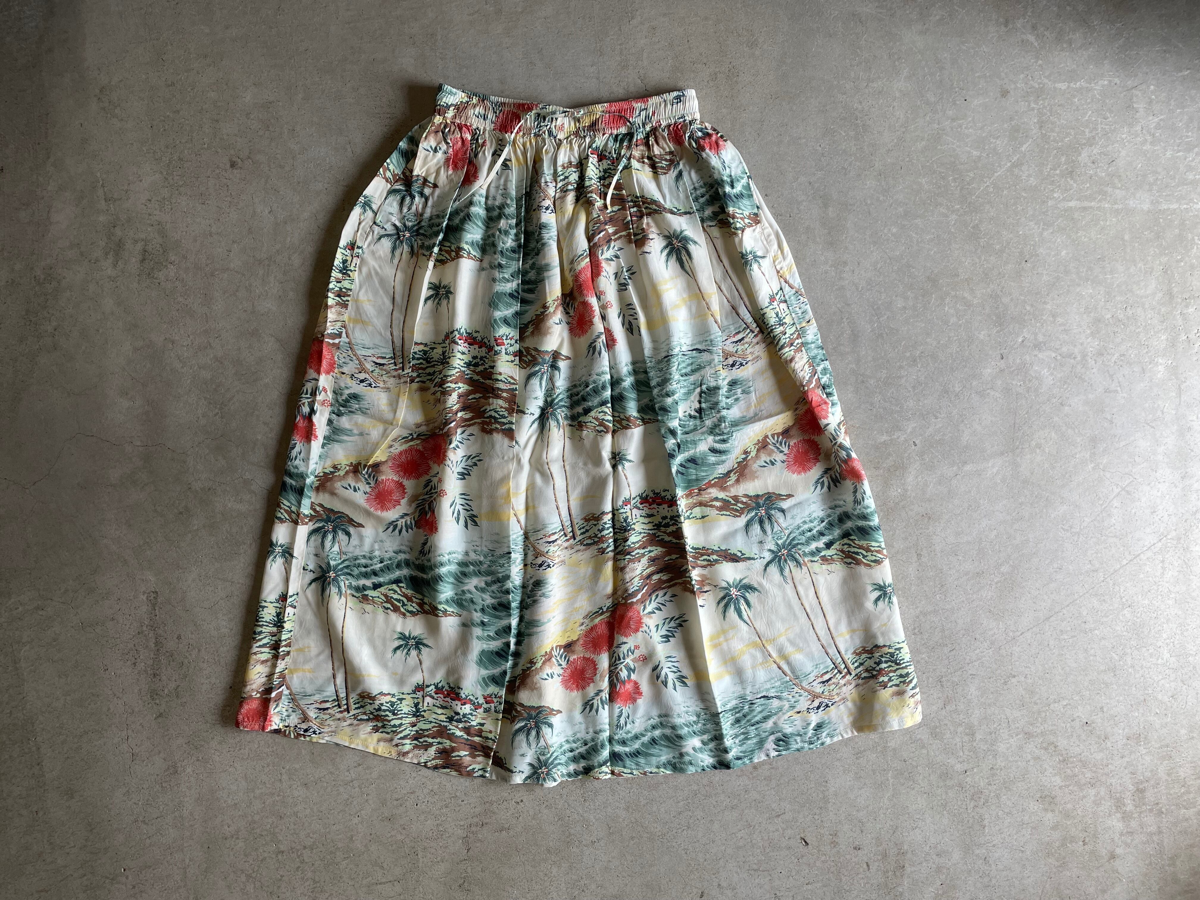 ハワイアンプリントが季節を感じさせるギャザースカートです。