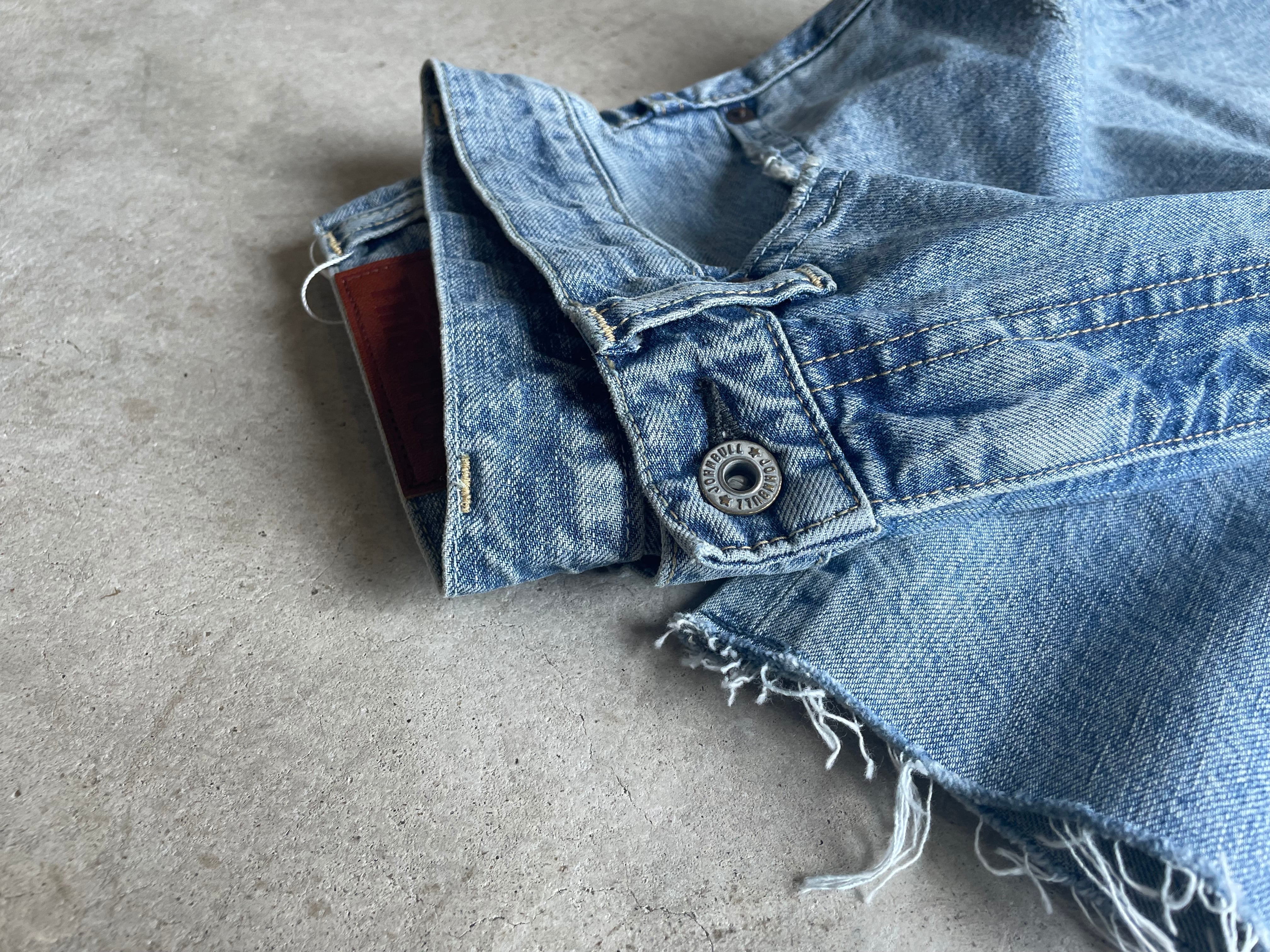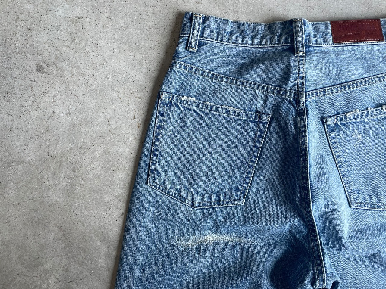 しっかりめの生地に、クラッシュやほつれ感を出すことで程よいバランスのヴィンテージライクな仕上がりに。