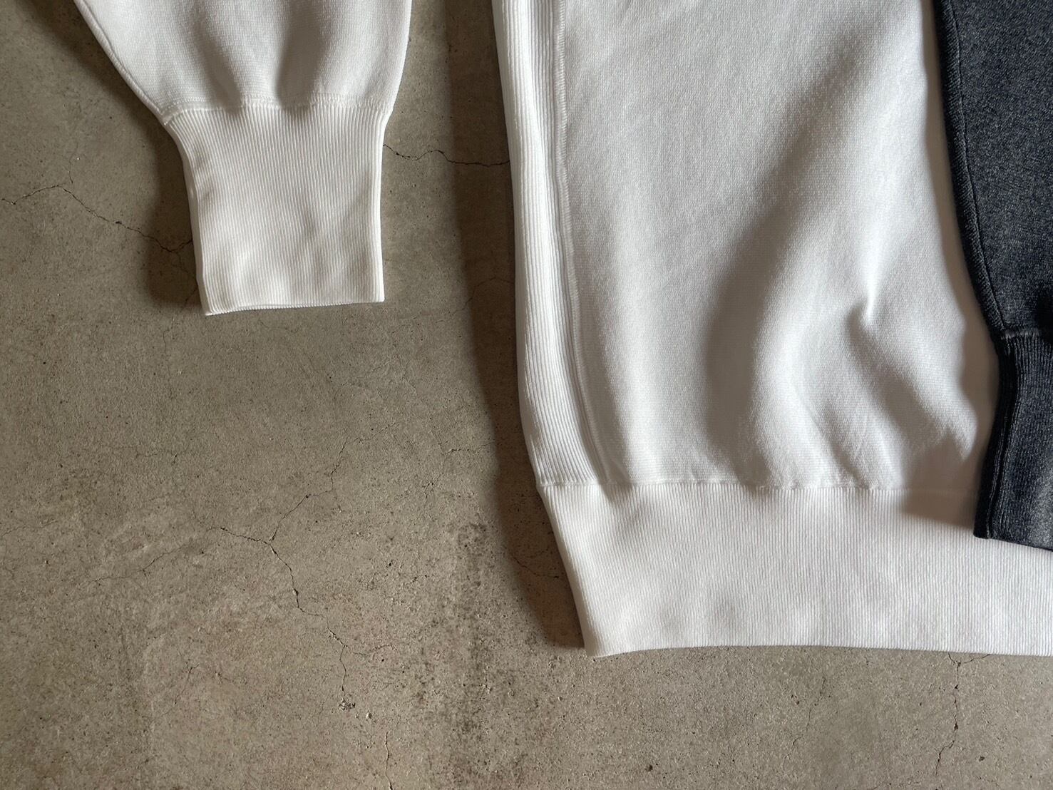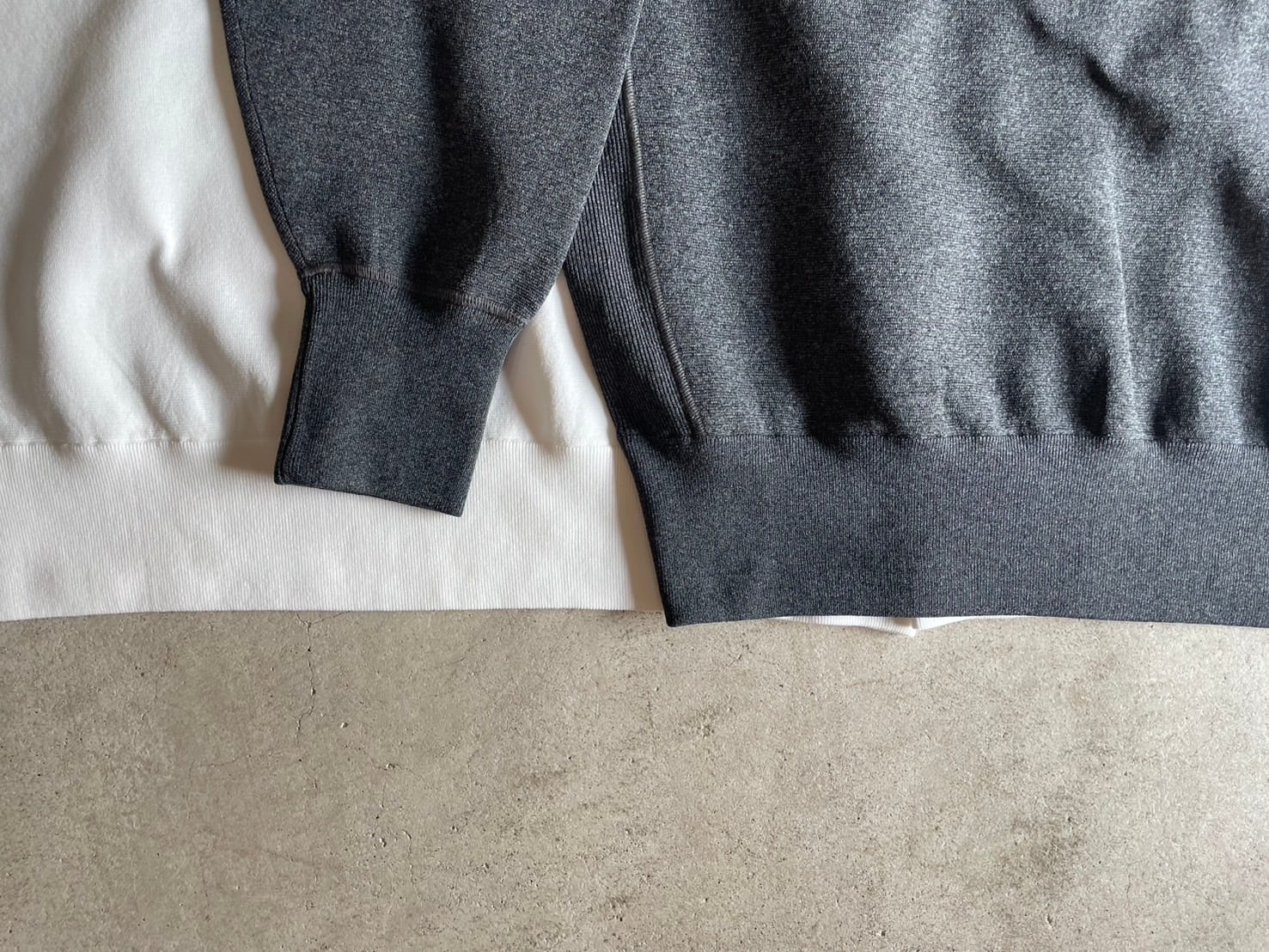 今回はSWEATさながらの肉感を持つミラノリブを採用し、定評のある着心地に加え、ほぼオールシーズン着れる高いドライ感と、SWEATにありがちな型崩れのネガをも克服し、ピリングにも強く、おまけに洗濯機で洗える、まさにヘビロテするために生まれたニットスウェットに仕上げています。