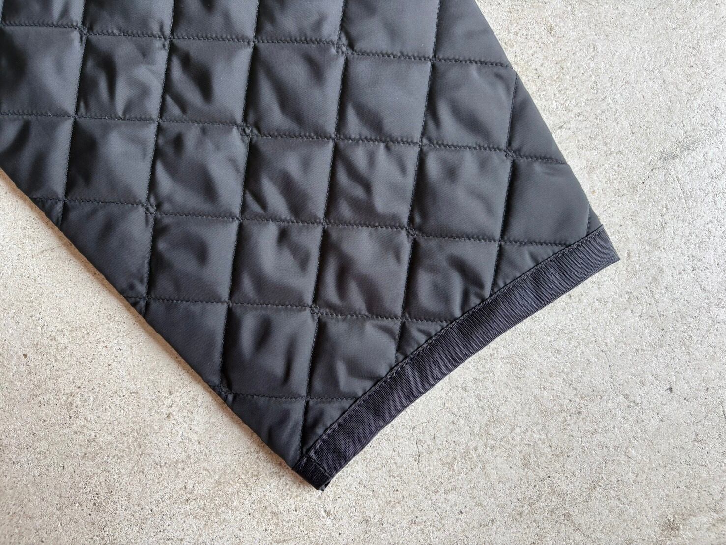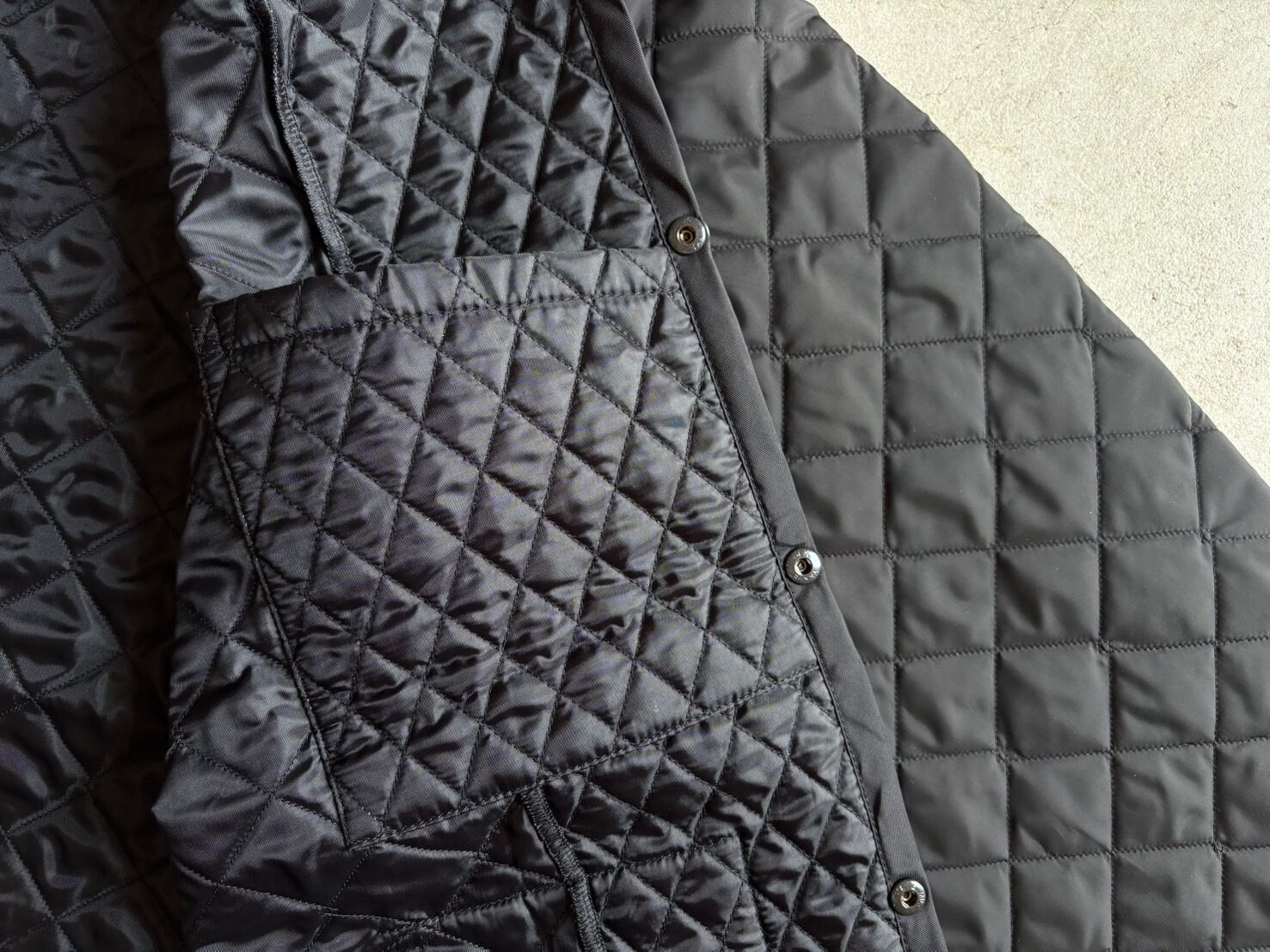 2つの異なるキルトパターンのパネルから作られています。季節の変わり目や秋のレイヤードスタイルに最適です。