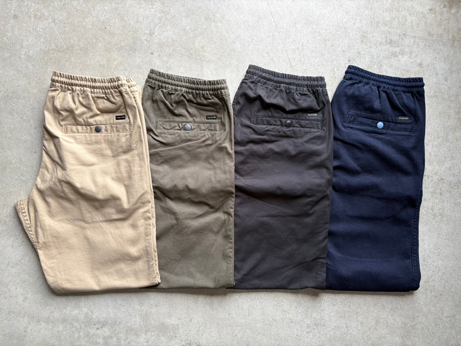 ベージュ、カーキ グリーン、ブラック、インディゴの4色です。
