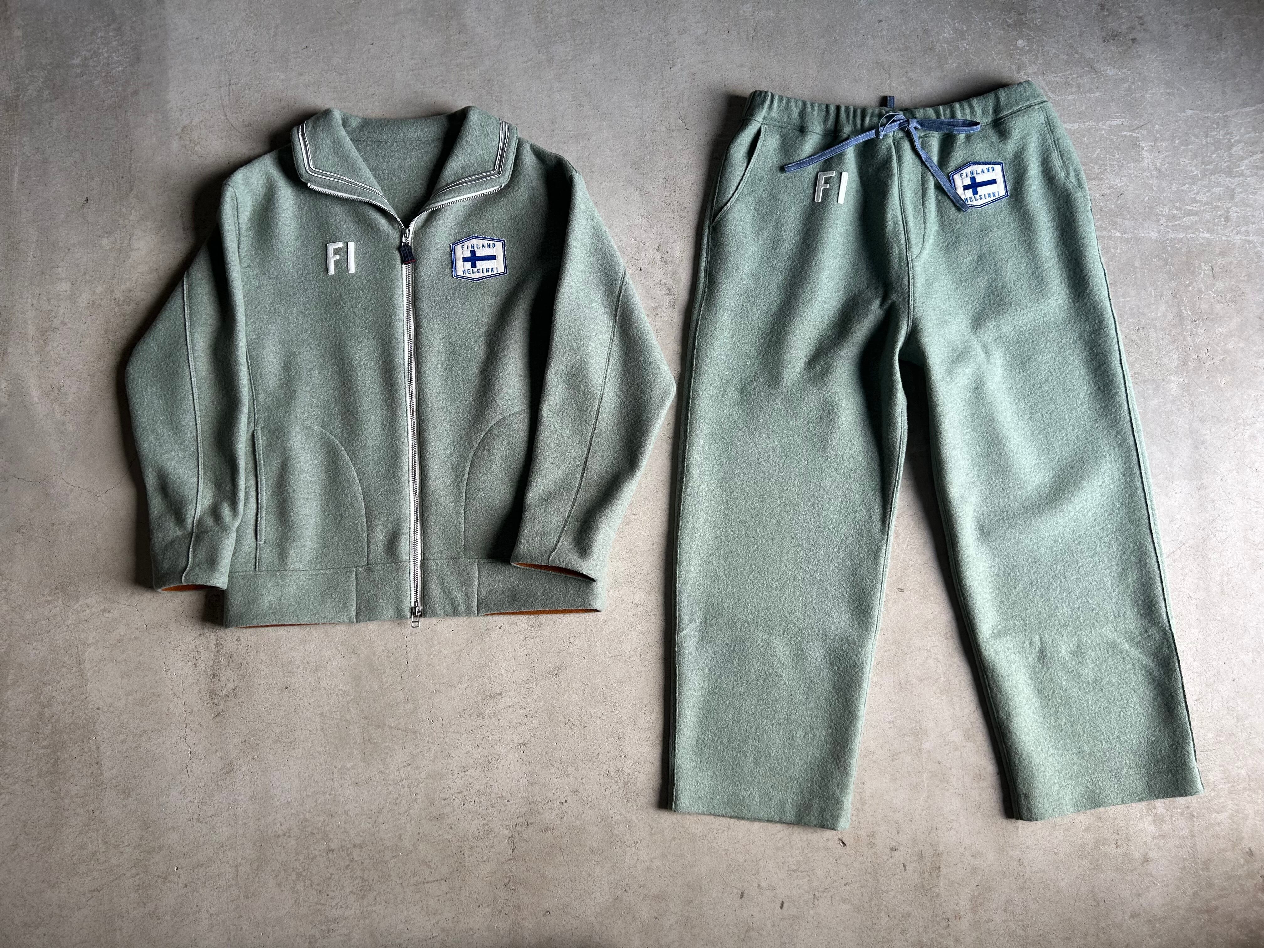 リングウールで作るとあたたかくでとても軽いジャージに。