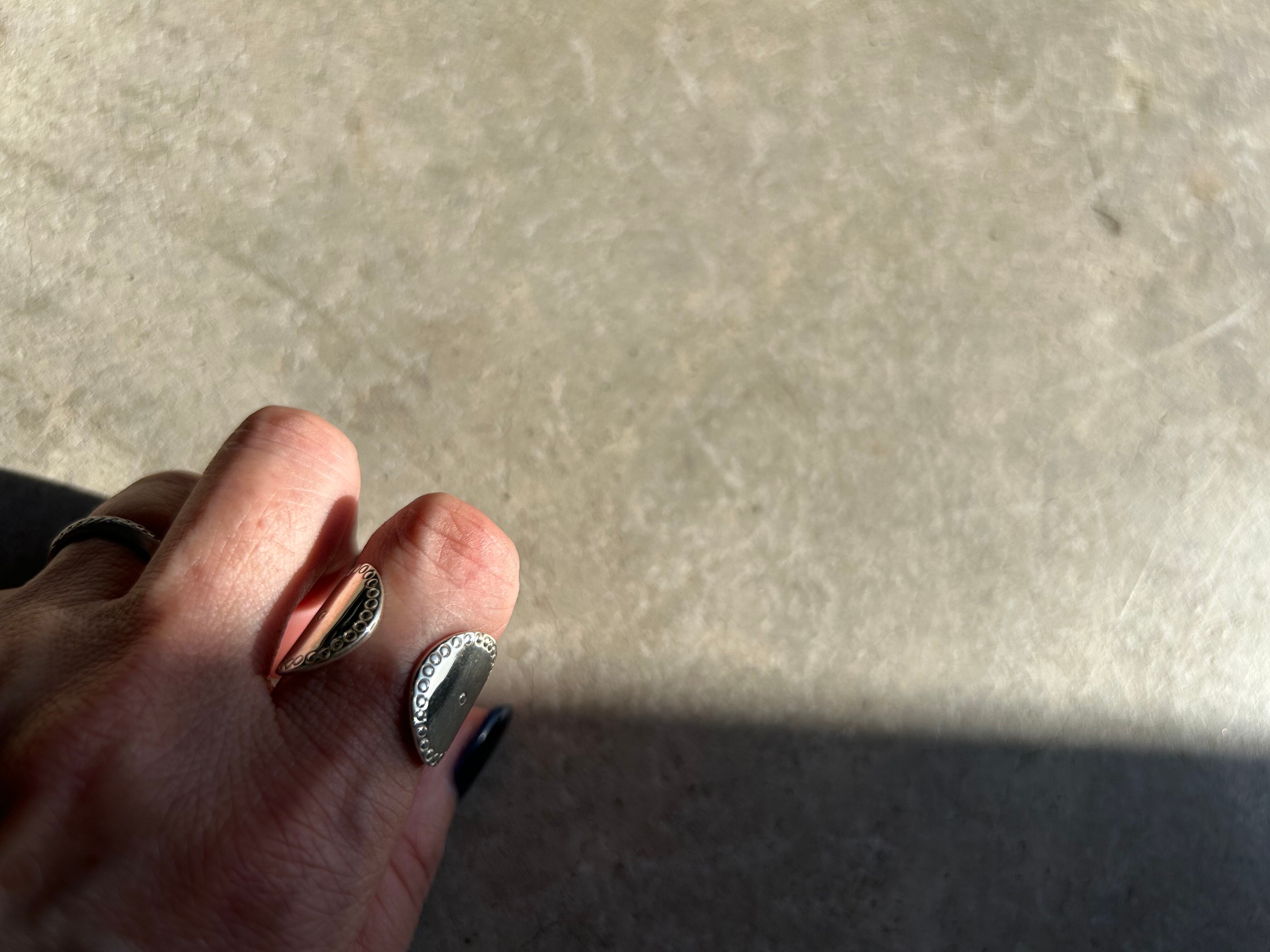 繋がらないデザインは表と裏で表情が変わるため、その日の気分で変化をつけられるのも嬉しいリングです。