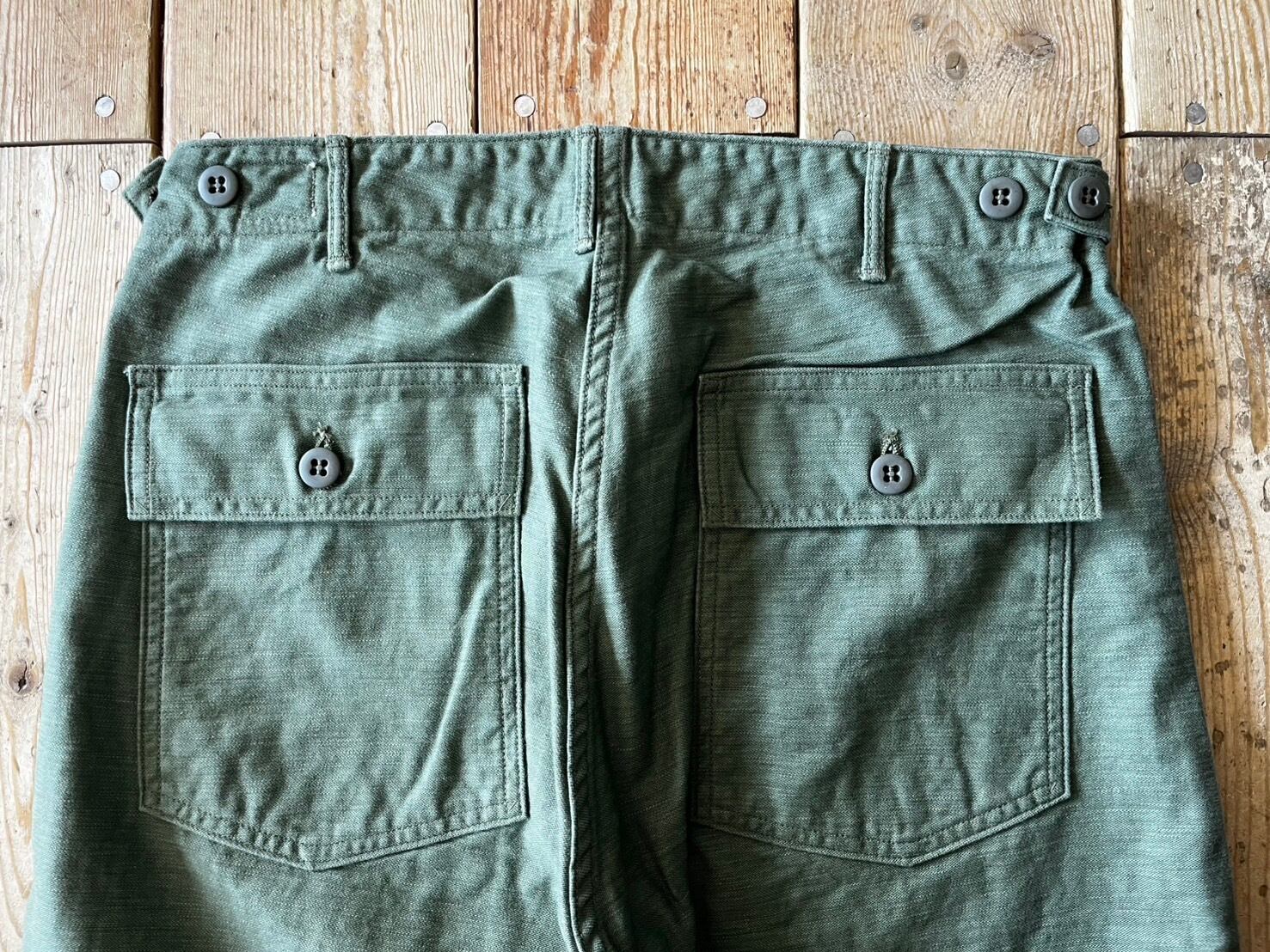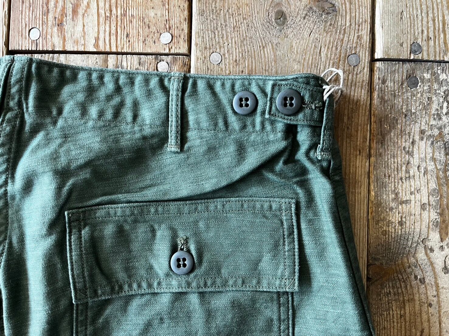 本来のUS ArmyのFatigue Pantsは股上が深くシルエットもワイドですが、こちらは股上もヴィンテージよりかは浅めに設定しシルエットはすっきりと仕上げてあり抜群に綺麗な形となっています。